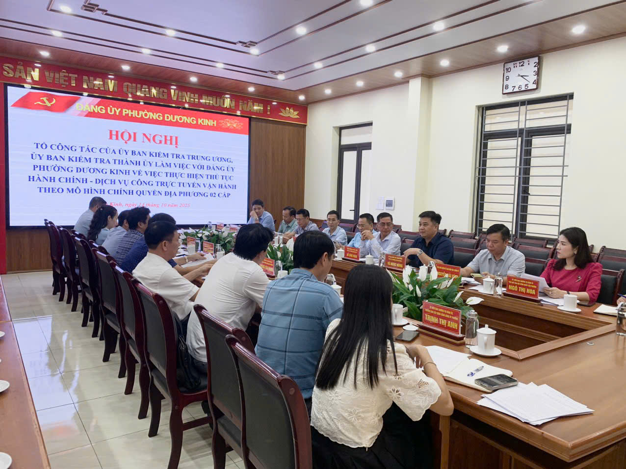 Chiều ngày 14/10/2025, Tổ công tác của Ủy ban Kiểm tra Trung ương, Ủy ban Kiểm tra Thành ủy làm việc với Đảng ủy phường Dương Kinh về việc thực hiện thủ tục hành chính - dịch vụ công trực tuyến vận hành theo mô hình chính quyền địa phương 02 cấp.
