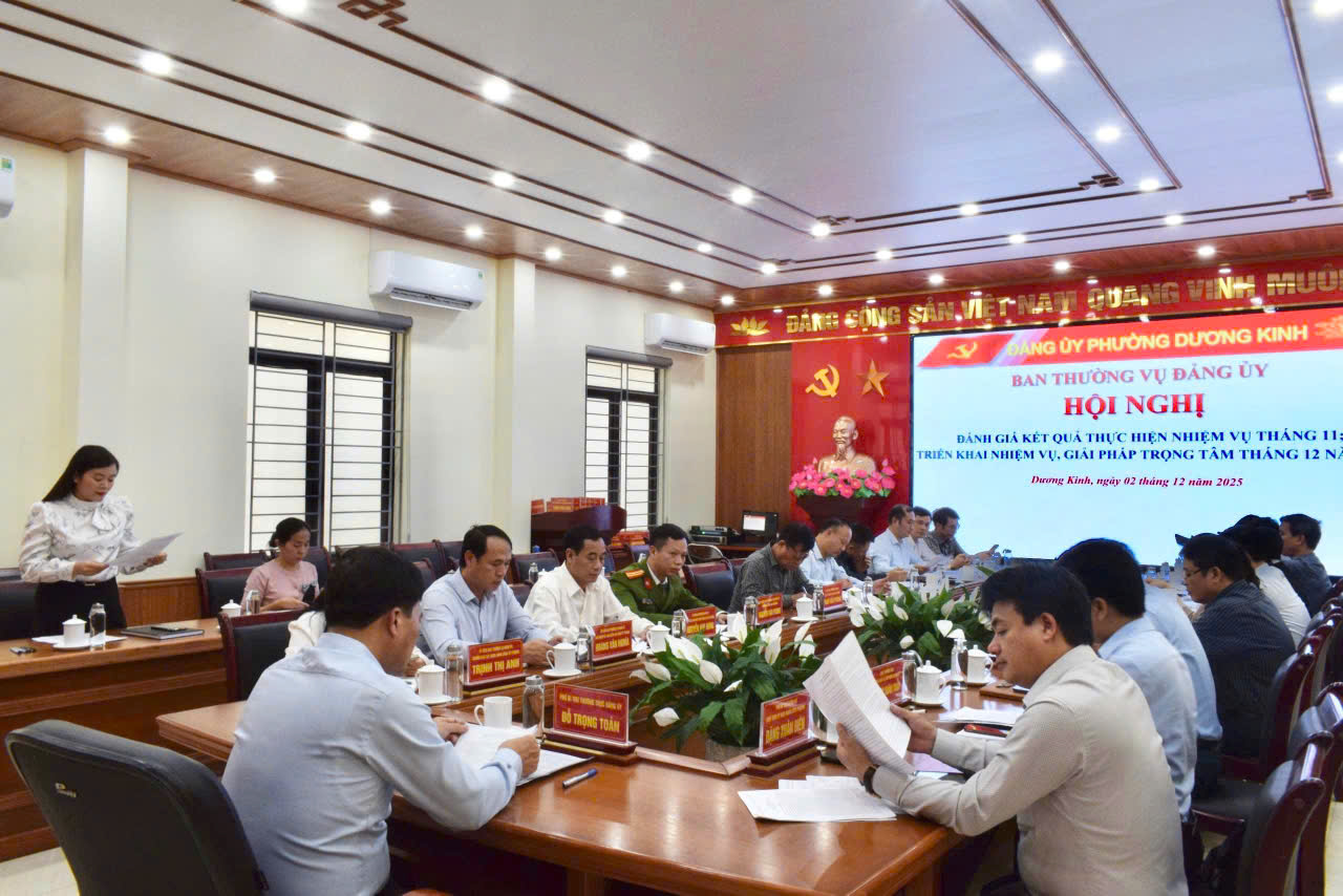 Ban Thường vụ Đảng ủy phường Dương Kinh tổ chức Hội nghị đánh giá nhiệm vụ tháng 11 và triển khai nhiệm vụ tháng 12/2025