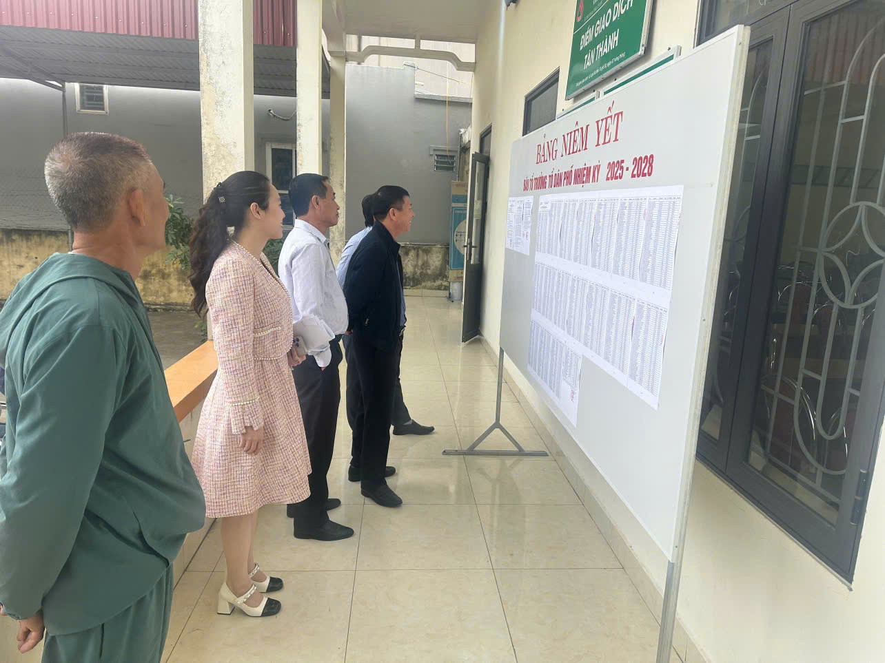 Các đồng chí lãnh đạo Đảng ủy - HĐND - UBND - UBMTTQ Việt Nam phường Dương Kinh khảo sát công tác tổ chức bầu Tổ trưởng Tổ dân phố nhiệm kỳ 2025 - 2028