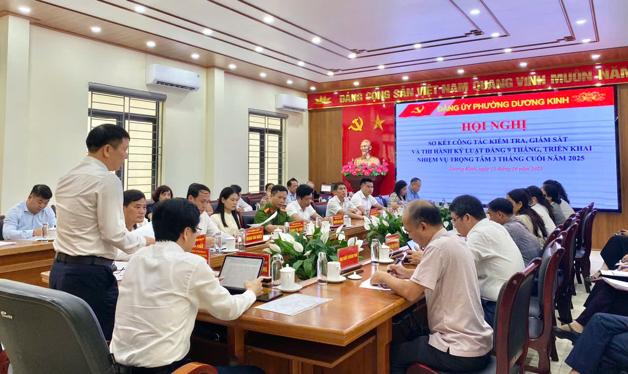 Chiều ngày 15/10/2025, Đảng ủy phường Dương Kinh tổ chức Hội nghị sơ kết công tác kiểm tra, giám sát và thi hành kỷ luật Đảng 9 tháng, triển khai nhiệm vụ trọng tâm 3 tháng cuối năm 2025.