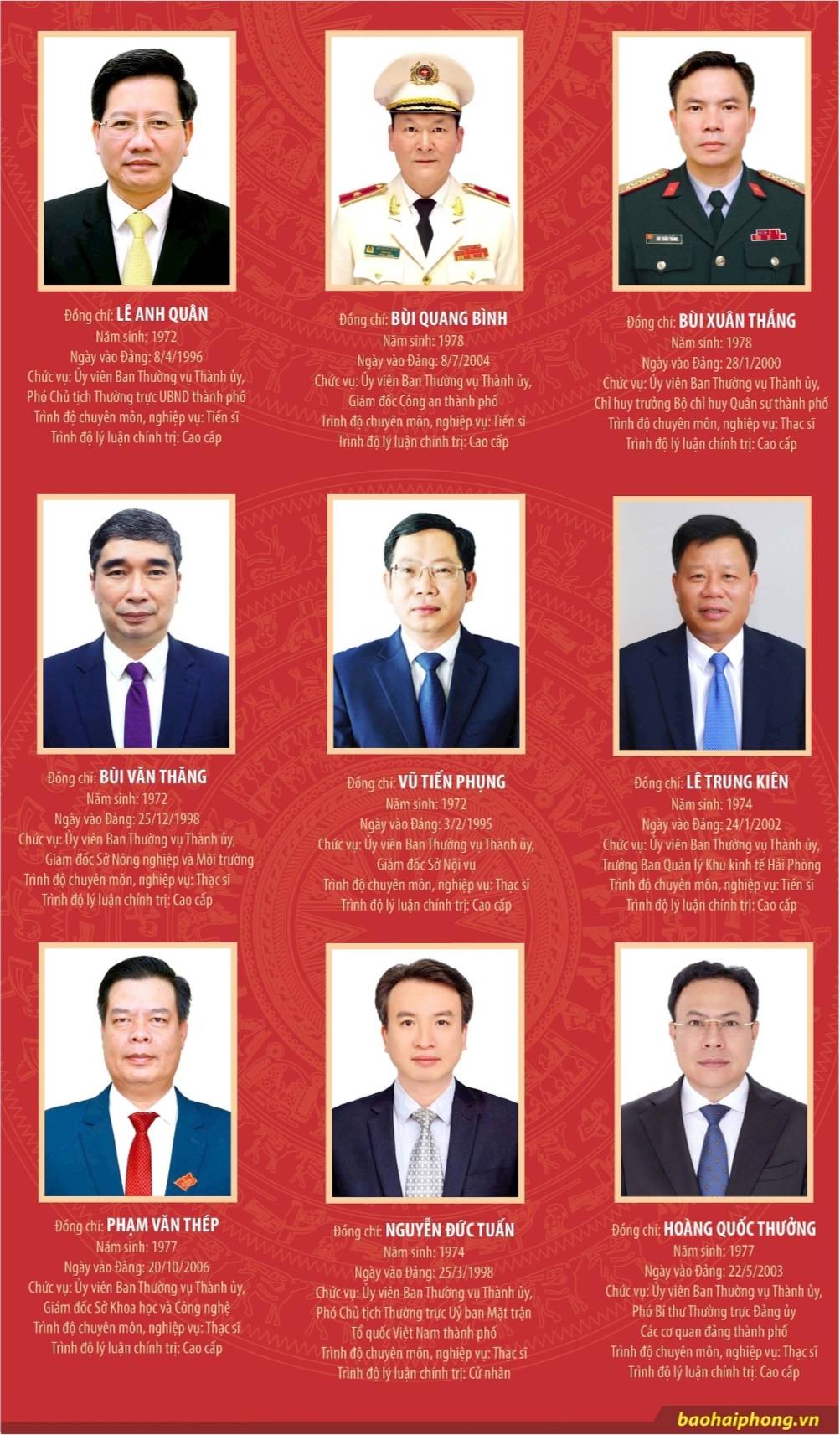 Danh sách 20 đồng chí Ủy viên Ban Thường vụ Thành ủy Hải Phòng nhiệm kỳ 2025 - 2030