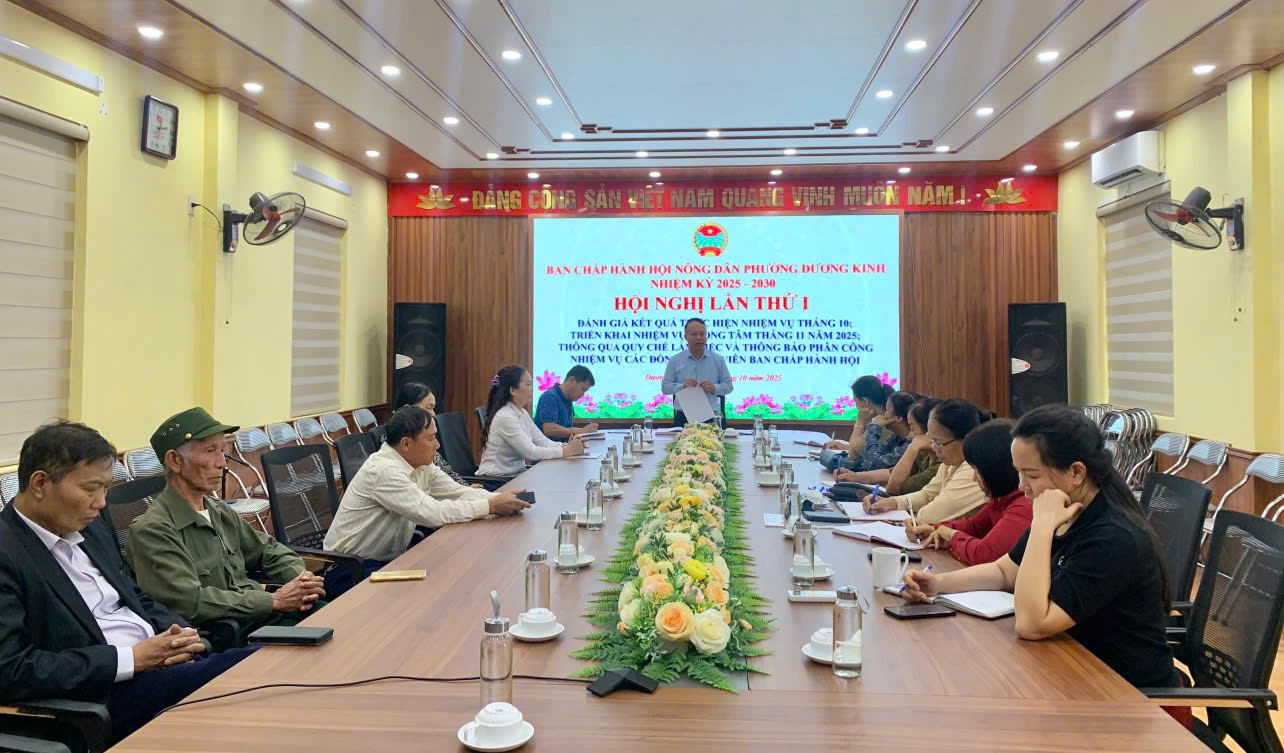 Chiều ngày 30/10/2025, Hội Nông dân phường Dương Kinh tổ chức Hội nghị Ban Chấp hành mở rộng nhằm sơ kết công tác tháng 10, triển khai nhiệm vụ trọng tâm tháng 11 năm 2025, đồng thời tiến hành Hội nghị Ban Chấp hành lần thứ I, nhiệm kỳ 2025 – 2030.