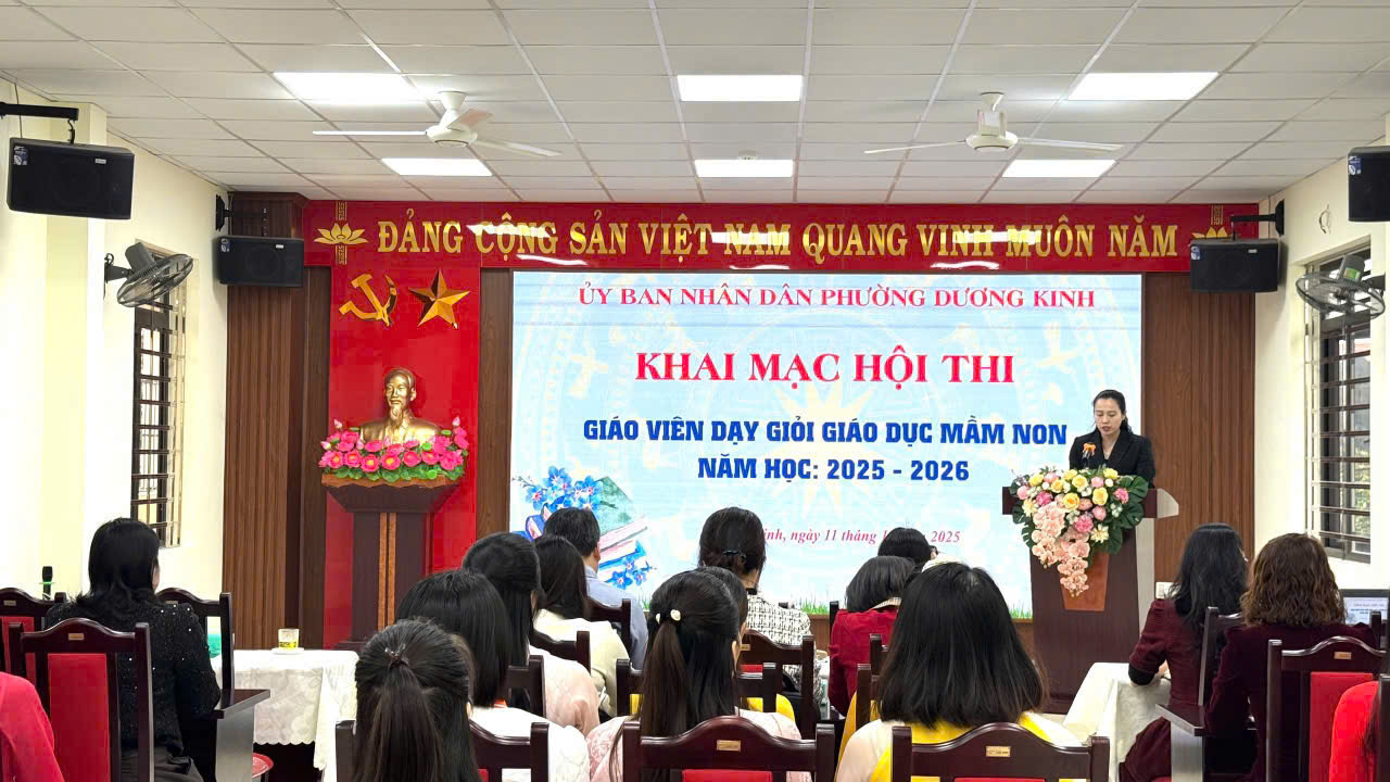 Thực hiện Kế hoạch số 110/KH-UBND ngày 28/11/2025 của Uỷ ban nhân dân phường về việc Tổ chức Hội thi giáo viên dạy giỏi cấp phường năm học 2025 - 2026, sáng ngày 11/12/2025, Ủy ban nhân dân phường Dương Kinh long trọng tổ chức Hội thi giáo viên dạy giỏi giáo dục mầm non cấp phường năm học 2025-2026.