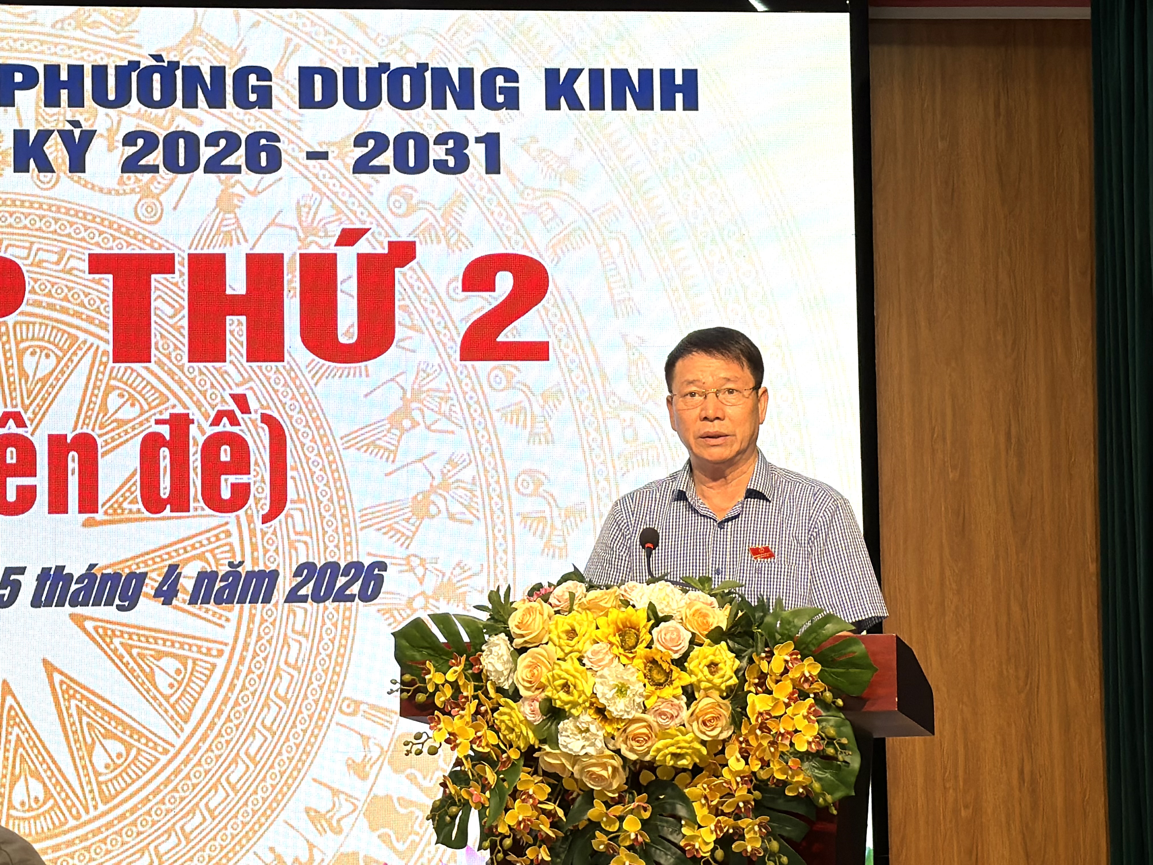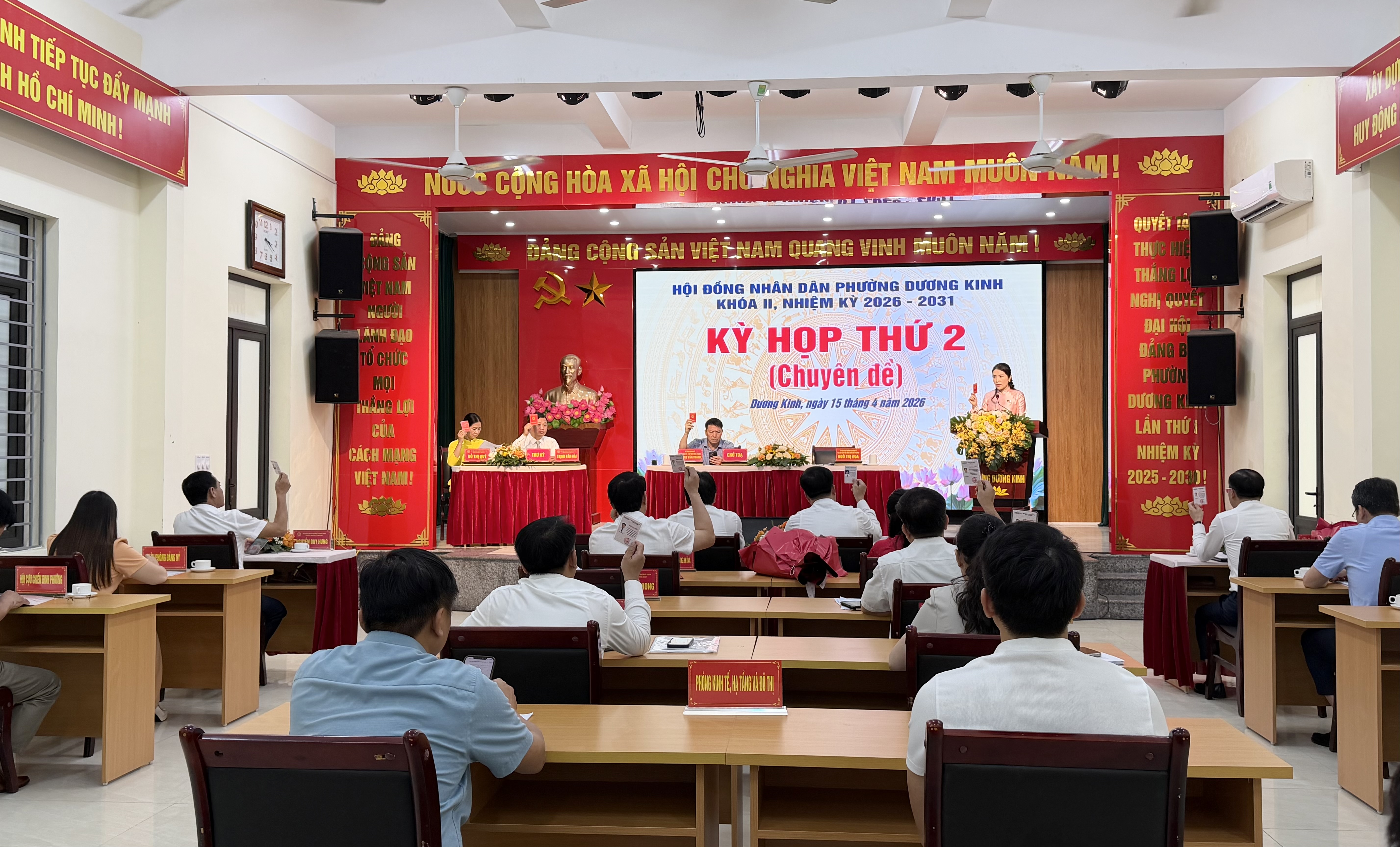 Kỳ họp thứ 2 (chuyên đề) HĐND phường Dương Kinh khóa II, nhiệm kỳ 2026 - 2031 đã hoàn thành toàn bộ nội dung, chương trình đề ra, tạo cơ sở quan trọng để địa phương tiếp tục thực hiện thắng lợi các nhiệm vụ phát triển kinh tế - xã hội, bảo đảm quốc phòng - an ninh trong năm 2026.