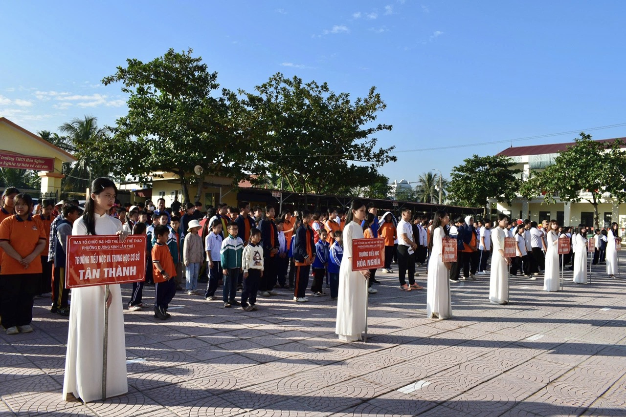 Lễ khai mạc diễn ra với chuỗi các hoạt động sôi động của lực lượng học sinh, cán bộ, hội viên và nhân dân trong không khí hào hứng, phấn khởi lan tỏa trên toàn khu vực tổ chức. Ngay sau Lễ khai mạc, các môn thi đấu chính thức được triển khai, gồm: điền kinh (chạy 100m), cờ vua, kéo co..., các nội dung thi đấu diễn ra tại Trường THCS Hòa Nghĩa.