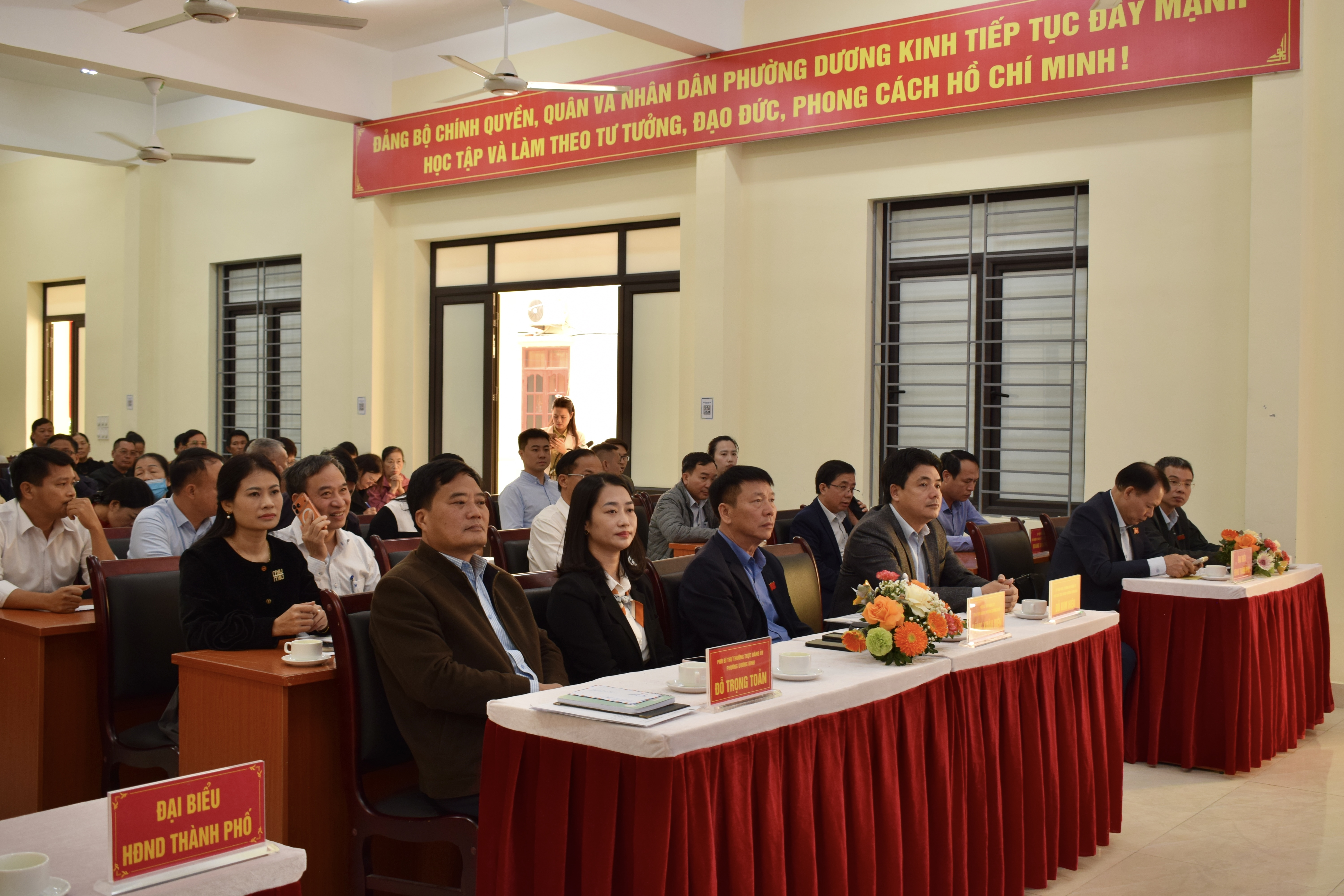 Tham dự Hội nghị có các đồng chí: Phùng Văn Thanh – Ủy viên Thành ủy, Bí thư Đảng ủy, Chủ tịch HĐND phường; Đỗ Trọng Toản – Phó Bí thư Thường trực Đảng ủy; Đặng Xuân Điện – Phó Bí thư Đảng ủy, Chủ tịch UBND phường; Nguyễn Duy Hưng – Ủy viên Ban Thường vụ Đảng ủy, Chủ tịch Ủy ban MTTQ Việt Nam phường; cùng đại diện các đoàn thể, trường học, tổ dân phố và doanh nghiệp đứng chân trên địa bàn.