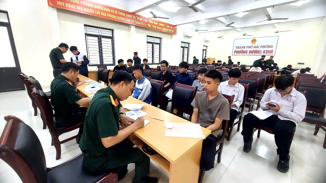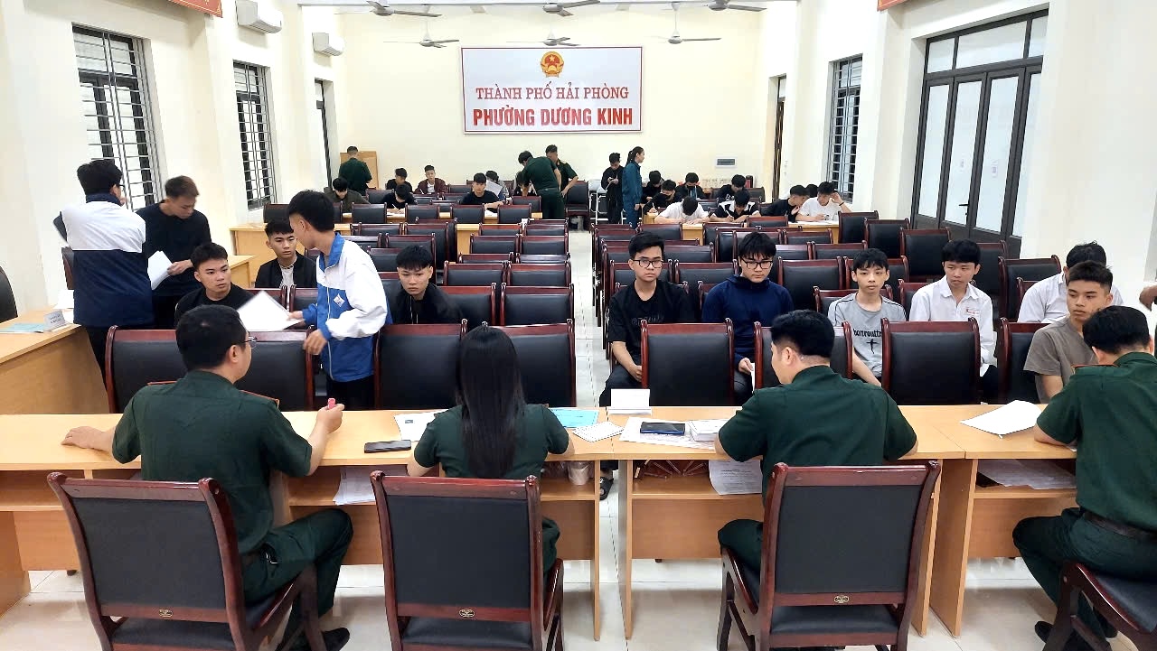 Cùng với công tác đăng ký, UBND phường Dương Kinh tiến hành rà soát, thống kê nguồn công dân trong độ tuổi gọi nhập ngũ năm 2027 nhằm nắm chắc số lượng, chất lượng công dân trong độ tuổi sẵn sàng nhập ngũ; kịp thời phân loại các trường hợp thuộc diện miễn, tạm hoãn, đủ điều kiện gọi nhập ngũ và công dân có trình độ chuyên môn, kỹ thuật.