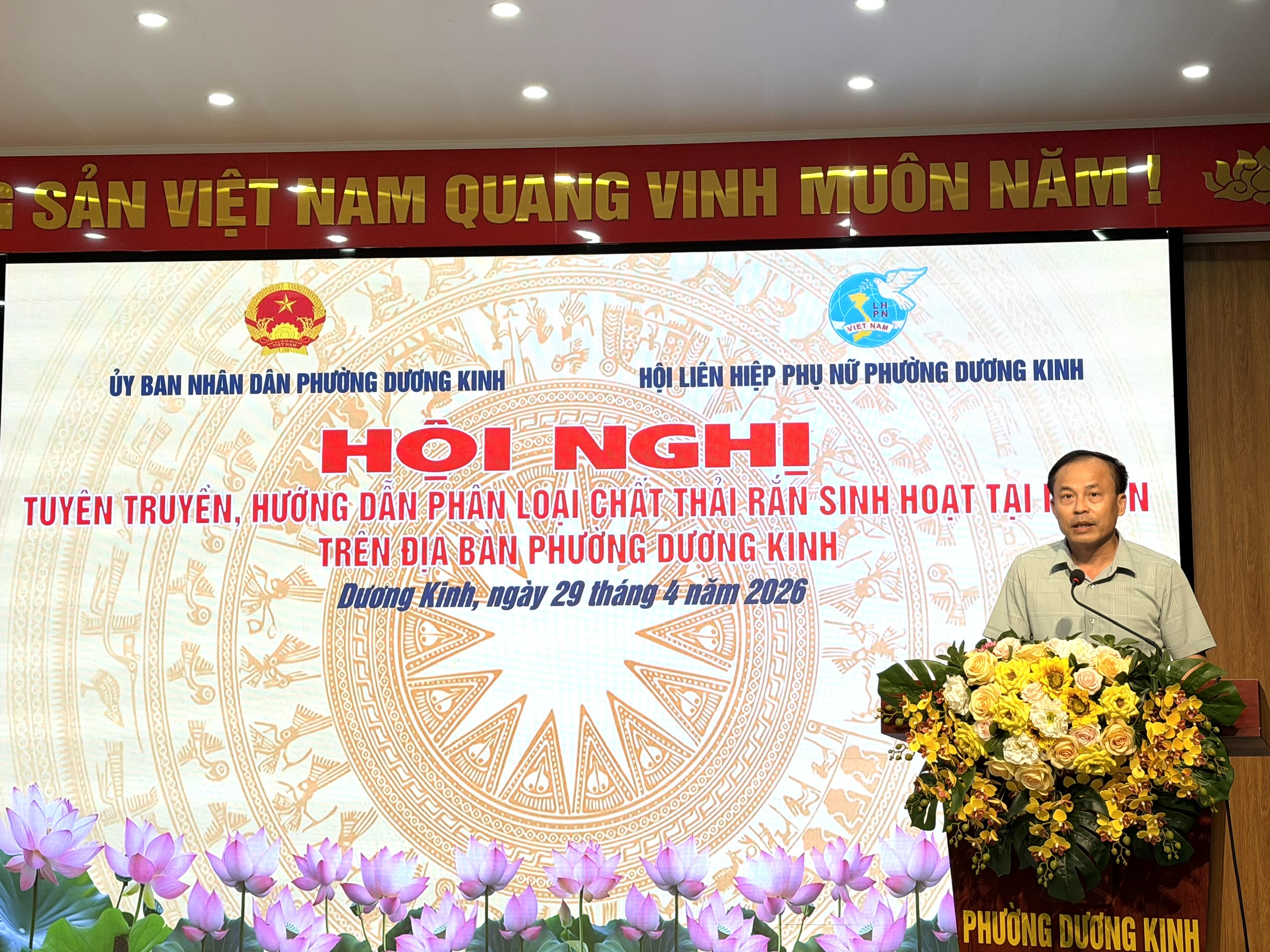 Chiều ngày 29/4, Ủy ban nhân dân phường Dương Kinh phối hợp với Hội Liên hiệp Phụ nữ phường tổ chức Hội nghị tuyên truyền, hướng dẫn phân loại chất thải rắn sinh hoạt tại nguồn trên địa bàn phường.