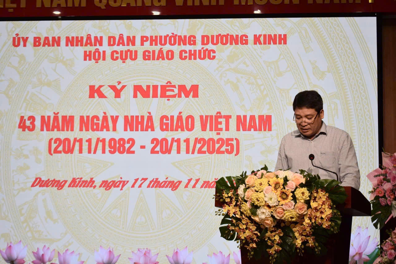 Sáng ngày 17/11/2025, UBND phường Dương Kinh đã long trọng tổ chức Hội nghị công bố hợp nhất Hội Cựu giáo chức phường và kỷ niệm 43 năm Ngày Nhà giáo Việt Nam (20/11/1982 – 20/11/2025).