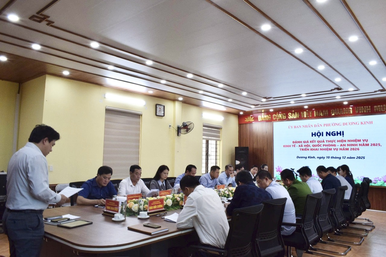 Chiều ngày 10/12/2025, UBND phường Dương Kinh tổ chức Hội nghị đánh giá kết quả thực hiện nhiệm vụ kinh tế - xã hội, quốc phòng - an ninh năm 2025 và triển khai phương hướng, nhiệm vụ năm 2026. Tham dự hội nghị có các đồng chí: Đỗ Trọng Toản – Phó Bí thư Thường trực Đảng uỷ; Đặng Xuân Điện - Chủ tịch Ủy ban nhân dân phường (Chủ trì Hội nghị); các đồng chí đại diện lãnh đạo Ban Xây dựng Đảng, Uỷ ban Kiểm tra Đảng uỷ, Văn phòng Đảng uỷ; các đồng chí Phó Chủ tịch Ủy ban nhân dân phường; lãnh đạo Mặt trận Tổ quốc và các đoàn thể chính trị - xã hội phường và lãnh đạo các đơn vị liên quan.